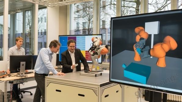 西門子——西門子中央研究院近日在慕尼黑演示了雙臂機器人的一部分,借助人工智能的高度自動化,該機器人無需編程即可自主分工協(xié)作,用于產(chǎn)品制造。西門子中央研究院Kai Wurm博士表示,“我們只需告訴機器人,把某個部件安裝到導軌上,它就會執(zhí)行這個操作。”作為一個簡化的例子,這項任務描述了“單件定制化生產(chǎn)”的內(nèi)涵。其中涉及加工或組裝含有不同部件的多樣化產(chǎn)品。機器人從關聯(lián)的軟件模型中獲取制造產(chǎn)品的相關信息。傳統(tǒng)的機器人無法理解這種CAD/CAM(計算機輔助設計和制造)模型,但新的機器人原型可以做到。從某種意義上說,這就好像機器人能夠理解不同的語言,從而不必對其運動和工藝進行編程。