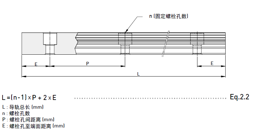 HIWIN 備有導(dǎo)軌標(biāo)準(zhǔn)長(zhǎng)度庫存供應(yīng)客戶需求。若客戶訂購非標(biāo)準(zhǔn)長(zhǎng)度導(dǎo)軌時(shí),端面距離E的尺寸最好不要大于1/2P,防止因E的尺寸過大導(dǎo)致導(dǎo)軌裝配后端部的不穩(wěn)定,而降低直線導(dǎo)軌的精度。