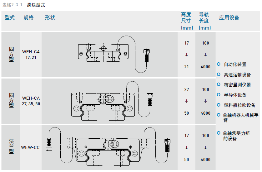 HIWIN提供法蘭型及四方型兩種直線導(dǎo)軌。