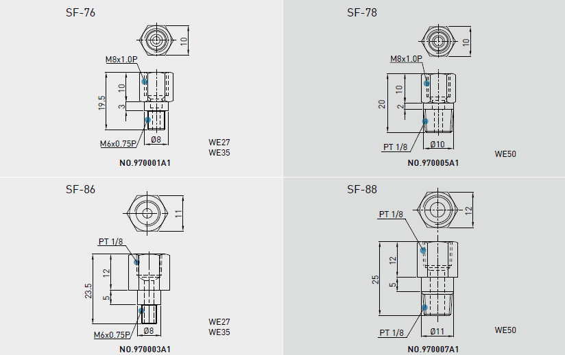 直線導(dǎo)軌WE系列油管接頭型式及防塵配備