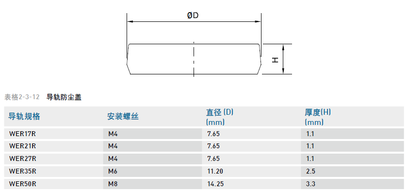導(dǎo)軌螺栓蓋,為防止切削粉末或異物經(jīng)由螺栓孔侵入滑塊內(nèi)部影響精度,客戶必須在安裝導(dǎo)軌時將螺栓蓋打入螺栓孔內(nèi),每支導(dǎo)軌出廠時皆配有螺栓蓋。