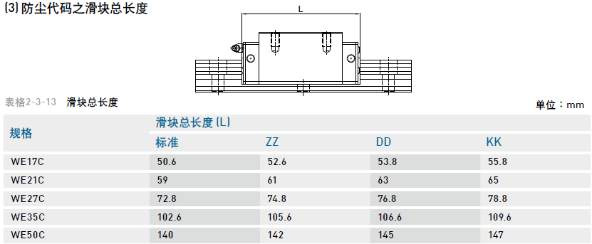 (3) 防塵代碼之滑塊總長度