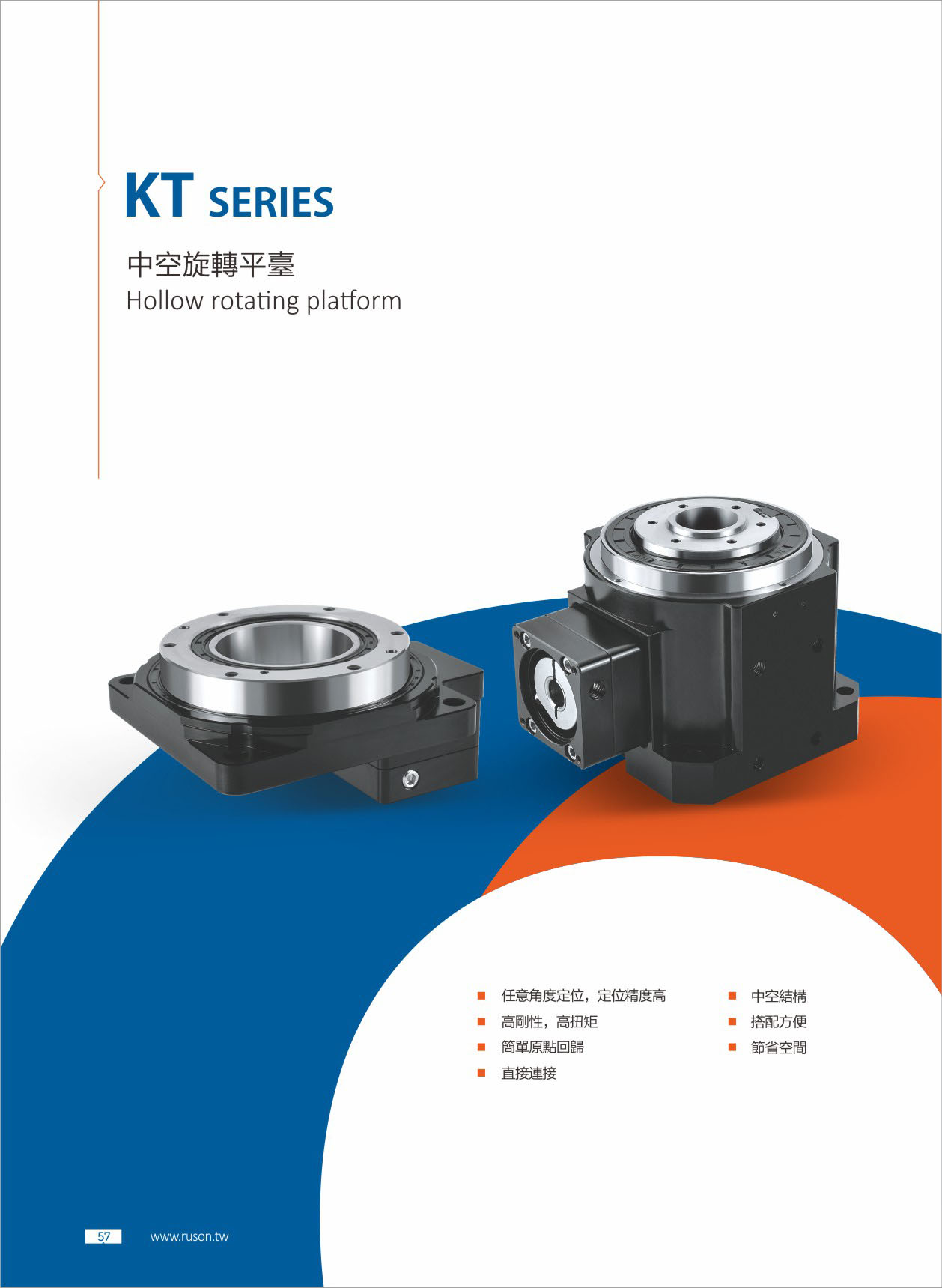 中空旋轉平臺是一款革命性的新產品。用于多種旋轉運動場合。可取代DD MOTOR與凸輪分割器。集高工作效率,高精度,高剛性,高性價比于一身。是旋轉運動機構中革命性的產品。在兩者之間取得平衡,重復定位精度≦5秒,馬達輕松配制,承載穩重,可搭配AC伺服馬達或步進馬達做任意角度分割,既可滿足分割器無法達到之數位控制,定位精度又可媲美DD