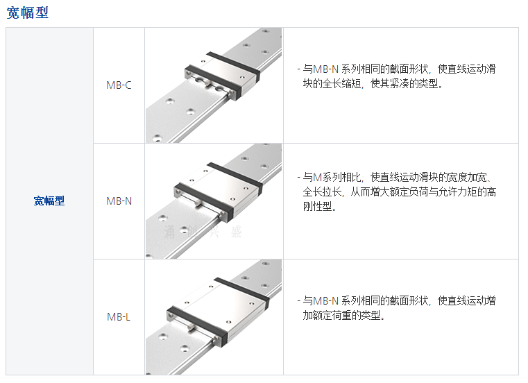 體積小、輕量化,滑塊主體的一部分采用了樹脂材料,重量減少約20%,特別適合小型化設備使用。不銹鋼材質之線性滑軌,包含滑塊、滑軌及其它金屬配件如鋼珠、保持器等,皆使用不銹鋼材質,具備防銹的特性。采用哥德型四點接觸設計,可承受各方向負荷,具備剛性強,精度高等特性。有鋼珠保持器設計,在精度允許下具備互換性。